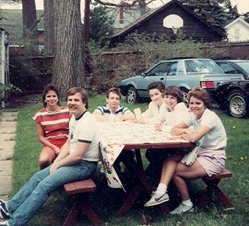 Adrienne, Cheryl, and Leslie, and brother-in-law Rich, 1984 (just after my